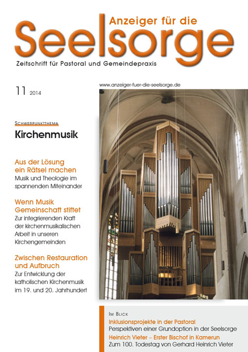 Religiöse Erfahrung geht weit über das hinaus, was der Verstand begreifen kann. Sie umfasst nicht zuletzt auch die Emotionalität, Sinnlichkeit und Ästhetik. Um sich den verschiedenen Tiefendimensionen der Religiosität zu nähern bzw. in die Religiosität einzutauchen, bedarf es ganzheitlicher, Gedanken übersteigernder Wege. Solche Wege bahnt auch die religiöse Musik. Sie verbindet religiöse Texte und Gedanken mit Melodien, die den Menschen ganzheitlich in seiner Vieldimensionalität ansprechen. Und sie ermöglicht es Menschen, Religion gemeinsam mit anderen Gläubigen, beispielsweise im Chor, zu erleben: Viele Menschen spüren intuitiv die religiöse Kraft, die der Musik innewohnt. Sie schließen sich Kirchenchören an, in denen religiöse Musik kultiviert wird, und erleben im Gesang die unterschiedlichen (harmonischen und mitunter auch disharmonischen) Klänge des Glaubens. Die Beiträge des Anzeigers für die Seelsorge gehen in diesem November auf die pastoralen Chancen der Kirchenmusik ein und ermutigen dazu, die Bedeutung einer gepflegten Kirchenmusik für einen tatsächlich erlebten Glauben neu zu entdecken.