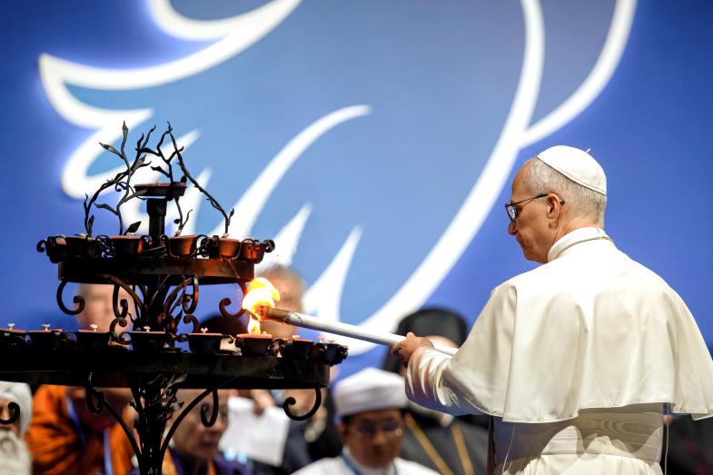 „Nie mehr Krieg“, war Papst Leos dringender Appell in seiner ersten Sonntagsansprache. Dieser Papst will ein Friedenspapst sein. Mit einem Gebet am Kolosseum hat er erneut auf das Thema aufmerksam gemacht. Die Zeremonie bildete den Abschluss eines Treffens, zu dem Vertreter verschiedener Religionen aus aller Welt nach Rom geladen waren. Ein wichtiges Zeichen in einer Zeit, in der allzu oft die Gewalt das letzte Wort zu haben scheint. Sei es der Krieg in der Ukraine, der seit dreieinhalb Jahren – und in Wahrheit schon viel länger – tobt. Oder der Waffenstillstand in Gaza, der von Tag zu Tag brüchiger wird. Oder andere kriegsgeplagte Weltregionen, über die man nicht so viel in den Schlagzeilen liest, wie der Sudan, wo Experten von einem drohenden Völkermord sprechen. Für sie alle und so viele mehr brennt das Friedensfeuer in Rom. (Foto: Sipa USA / SOPA Images / Picture alliance)