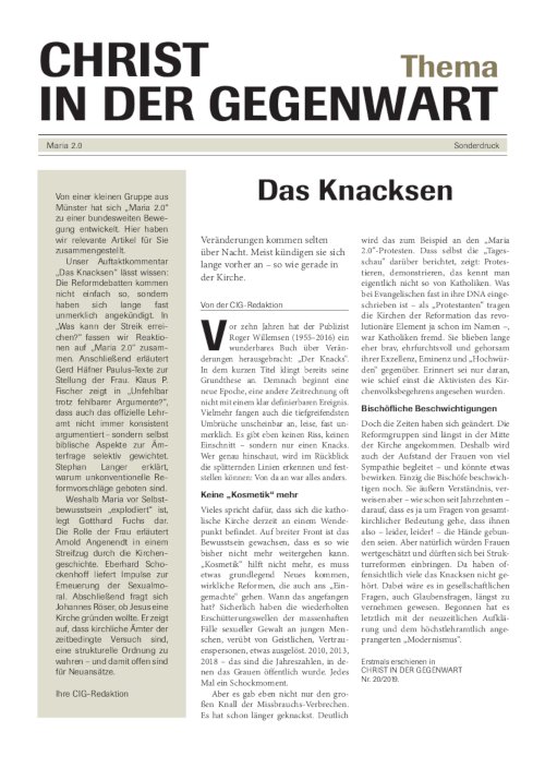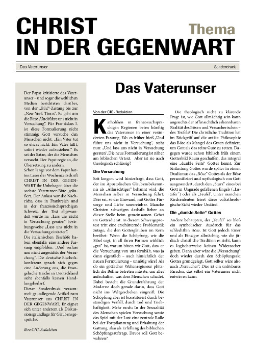 Die Sonderdrucke dienen der geistig-geistlichen Vertiefung und Weiterbildung im Glauben. Sie bieten Interessierten die Möglichkeit, sich intensiv mit einem bestimmten Thema auseinanderzusetzen und können als Anregung für Gesprächs- und Liturgiekreise, den Religionsunterricht, Pfarrgemeinderäte, Jugendarbeit etc. herangezogen werden.