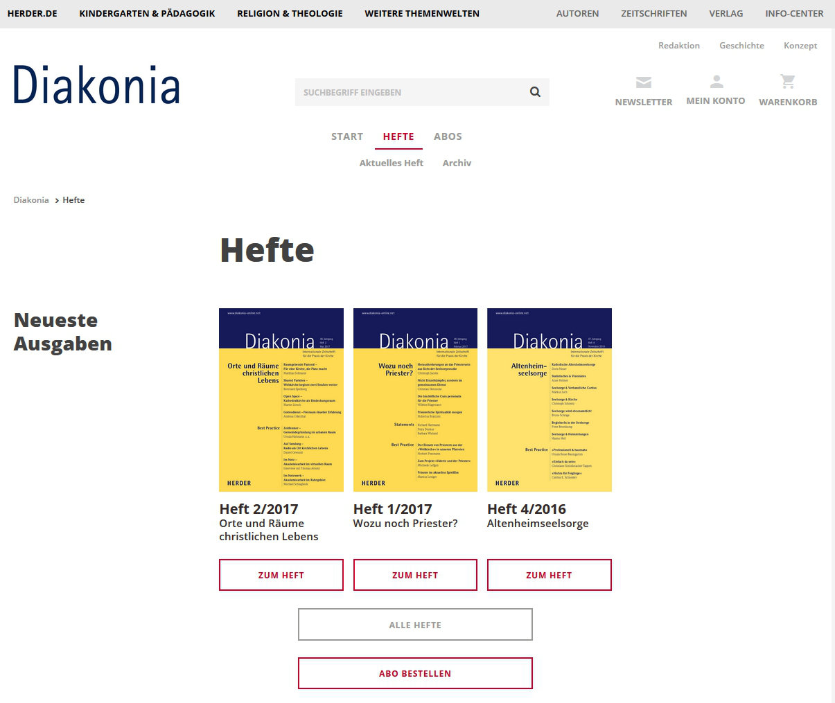 Die Diakonia erscheint viermal jährlich. Im Heftarchiv können Sie alle Hefte und Artikel seit 2016 einzeln als PDF-Datei bestellen.