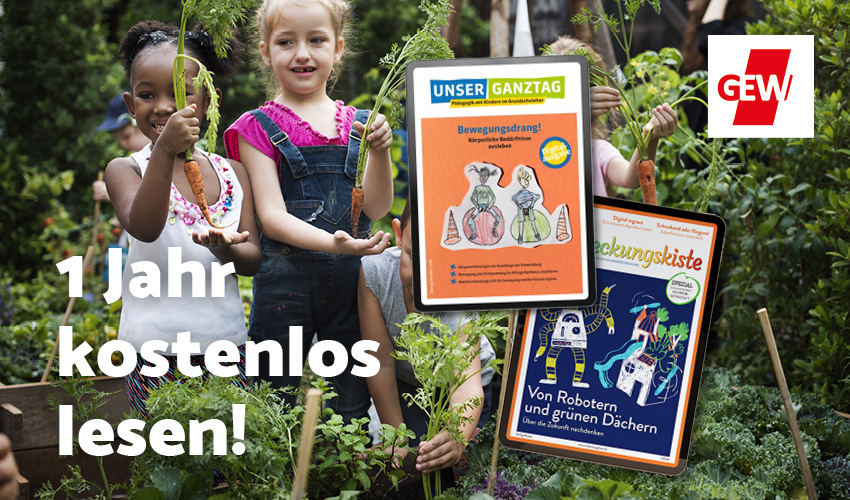 Sonderaktion für GEW-Mitglieder Wir schenken Ihnen ein Jahr lang einen kostenlosen Zugang zu den digitalen Ausgaben einer unserer Zeitschriften Entdeckungskiste oder Unser Ganztag. Jetzt bestellen