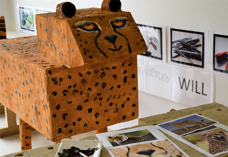 Plus S. 20-21 Spielen und Gestalten Der Gepard: Gemeinschaftlich eine Tierskulptur aus Pappmaschee gestalten Am wöchentlichen Kreativnachmittag entsteht bei den Kindern der Kita St. Peter und Paul (Aicha vorm Wald) der Wunsch, eine riesige Tierfigur zu bauen. Gemeinsam gestalten sie einen Gepard. Von Anna Kreipl Themenpaket: Mit Recyclingmaterialien gestalten und basteln