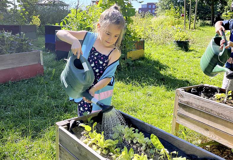 Als Matilda (5;8 J.), Mattis (6;6 J.) und Ekin (7;2 J.) im Kräuterbeet der Kita Rieselfeld (Freiburg) Unkraut jäten, entdecken sie eine Schnecke. Diese setzen sie in ein Terrarium ein, um sie darin ausgiebig zu begutachten. Von Sina Schnebel