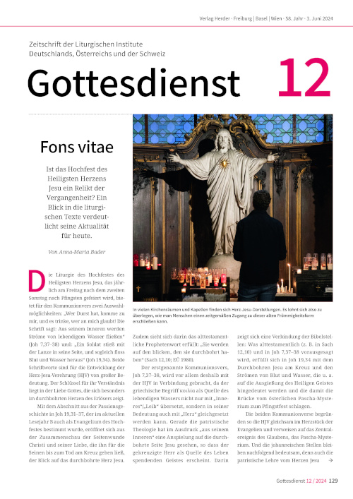 Plus S. 129-131 Fons vitae Ist das Hochfest des Heiligsten Herzens Jesu ein Relikt der Vergangenheit? Ein Blick in die liturgischen Texte verdeutlicht seine Aktualität für heute. Von Anna-Maria Bader