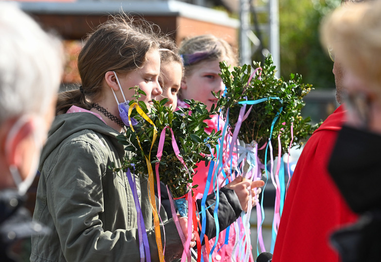 Plus S. 77 Kling, Glöckchen, an Ostern! Ein Klangteppich, mit kleinen Glöckchen vorgebracht von (den Kindern) der Gemeinde, bietet eine neue Beteiligung an der Verkündigung des Osterevangeliums und lässt die Osterbotschaft neu erleben. Von Michael Pfeifer