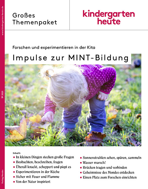 Plus Ausgabe 11-12_2025 S. 38-29 MINT-Bildung: Einen Platz zum Forschen einrichten Am Waschbecken oder im Garten – für Kinder gibt es überall einen Ort zum Forschen. Einige Tipps für Materialien, Werkzeuge, Utensilien, die sie bei ihrer Suche nach Antworten unterstützen können. Von Regina Killian, Maike Baumann