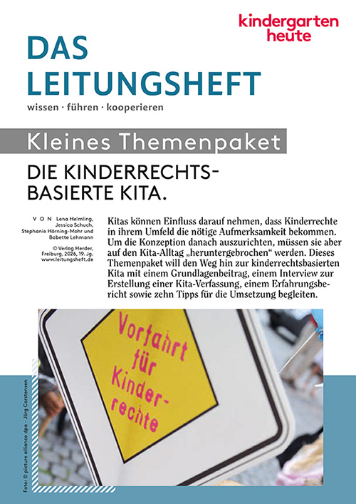 Eigentlich müssen Kinderrechte nicht vom Leitungsteam zum Thema gemacht werden. Denn die Kinder bringen sie selbst in die Kita. So erleben es Leiterin Stephanie Hörning-Mohr und ihre Stellvertreterin Babette Lehmann. Anhand des Kinder rechts auf Beteiligung zeigen sie, wie Wünsche und Entscheidungen der Kinder konsequent ernst genommen werden. Von Stephanie Hörning-Mohr, Babette Lehmann