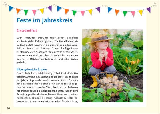 Rituale sind für kleine Kinder wichtig, um Orientierung und Sicherheit zu erfahren. Für sie sind Traditionen und Jahresrhythmen noch neu, deshalb kommt den pädagogischen Fachkräften in der Krippe die Aufgabe zu, sie achtsam ins Thema "Feste" einzuführen. Wie jüngere Kinder die besondere Atmosphäre der Festtage erleben können, dabei gleichzeitig auf spielerische Weise etwas über ihre Hintergründe und Symbolik erfahren, zeigt Nadia Quast. Im Vordergrund steht bei allen Angeboten der Spaß und das Erleben von Gemeinschaft.