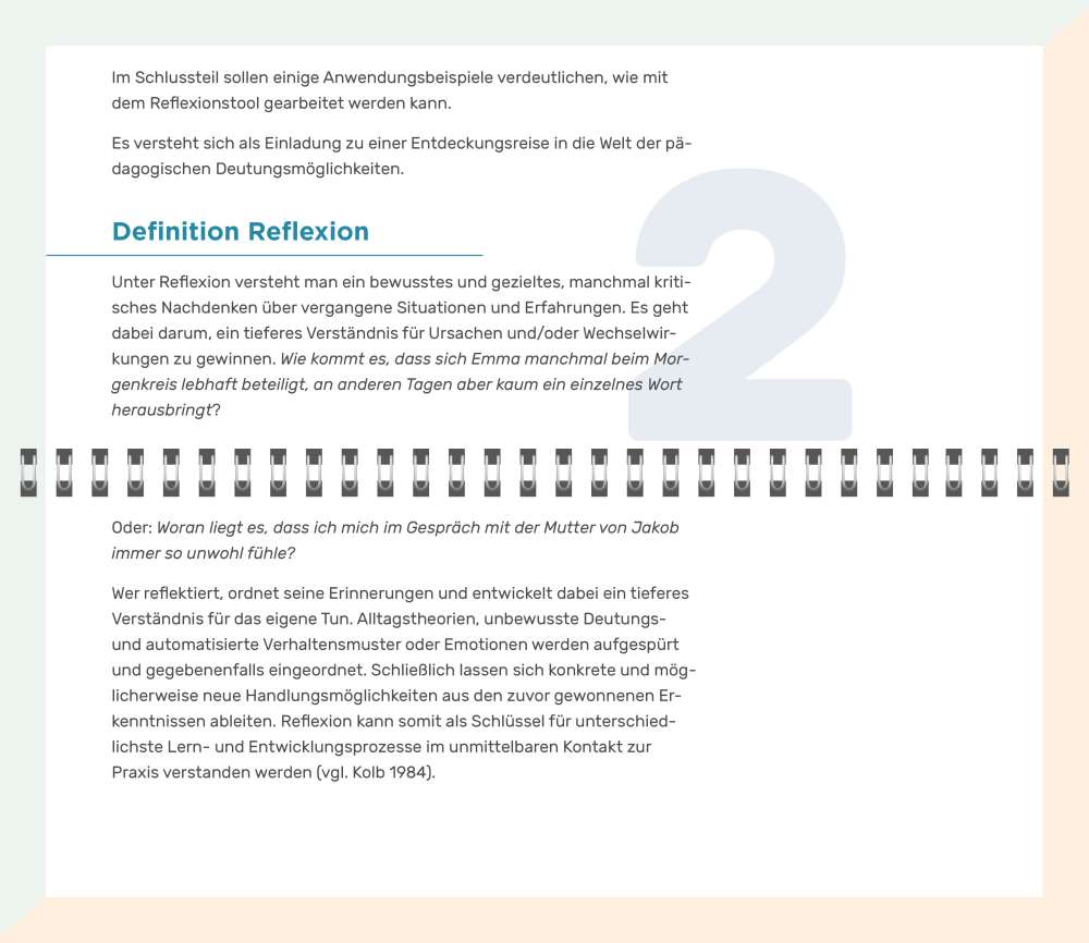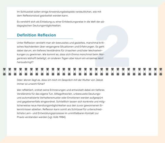 Im Erzieher*innen-Beruf ist die Fähigkeit zur Reflexion eine Schlüsselkompetenz. Fachkräfte erleben permanent, dass kleinschrittig geplante Vorgehensweisen in der konkreten Situation dann doch ganz anders ablaufen: Kindliches Verhalten ist selten kalkulierbar. Umso wichtiger ist es, Erfahrungen und Erlebnisse regelmäßig zu reflektieren. Indem die Fachkräfte diese rückwirkend deuten, erweitern sie ihr Repertoire an zukünftigen Handlungsoptionen nachhaltig.