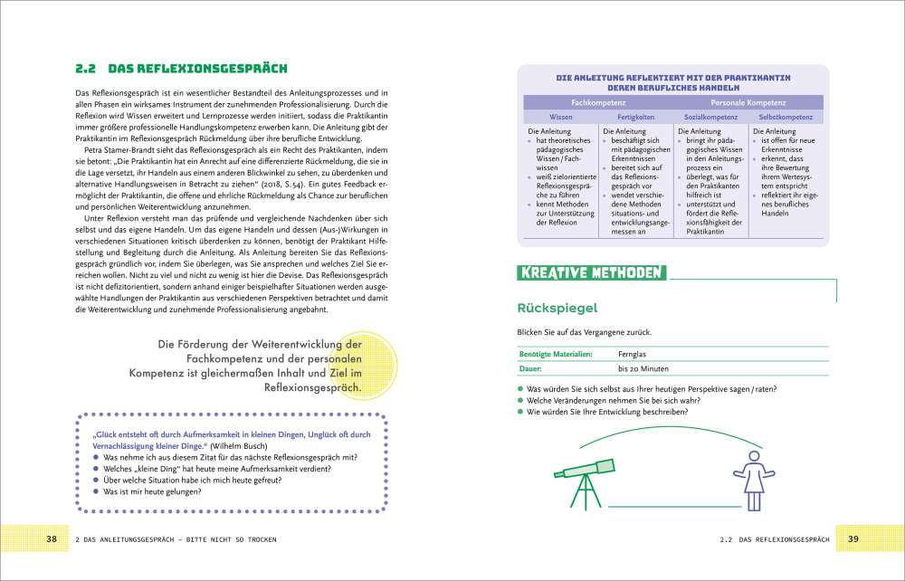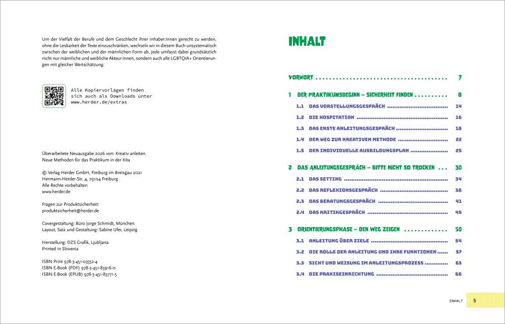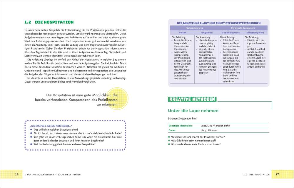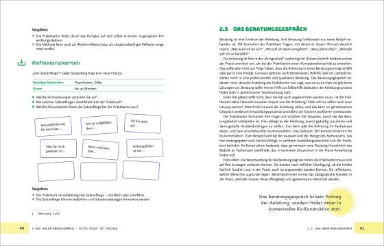 Die Anleitung und Begleitung von Praktikantinnen und Praktikanten ist eine verantwortungsvolle Aufgabe mit Blick auf die gelingende Ausbildung von pädagogischen Fachkräften. Dieses Buch begleitet und unterstützt den gesamten Anleitungsprozess mit strukturierten Inhalten und vielen praktischen Anregungen: Gegliedert nach einzelnen Praktikumsphasen – von der ersten Kontaktaufnahme bis zur Ablösephase – gibt es engagierten Anleiter:innen eine Vielzahl spannender Werkzeuge an die Hand. Das Buch bietet theoretisches Wissen auf den Punkt gebracht, Merksätze, reflexive Impulse, eine Übersicht der konkreten geforderten Kompetenzen der Anleitung und eine Fülle kreativer Methoden. Unterstützung und Anregung für jeden Bedarf!