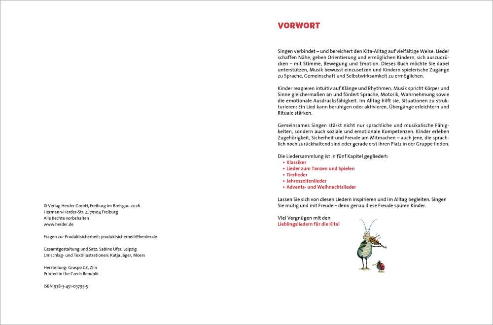 Singen bereichert den Kita-Alltag: Es schafft Nähe, gibt Struktur und stärkt Sprache, Gemeinschaft und Selbstvertrauen. Dieses Buch bündelt Klassiker, Bewegungs-, Tier-, Jahreszeiten- sowie Advents- und Weihnachtslieder – übersichtlich sortiert und ergänzt durch die wichtigsten Gitarrengriffe. Eine praktische Sammlung für pädagogische Fachkräfte, die Musik im Alltag gezielt und mit Freude einsetzen möchten.