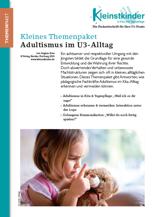 Plus 7/2025 S. 6-9 Adultismus in Kita & Tagespflege: "Weil ich es dir sage!" Herabwürdigendes Verhalten gegenüber Kindern zeigt sich im U3-Alltag oft subtil und ohne, dass es den Fachkräften bewusst ist. Wie lässt sich Adultismus aktiv entgegenwirken? Von Regina Rein