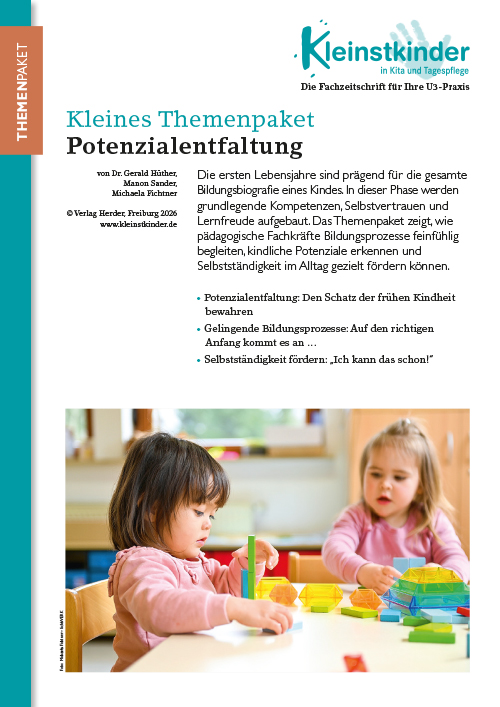 Plus 1/2026: Wie Kinder ihre Potenziale entfalten: Bedürfnisorientierte Begleitung S. 6-9 Potenzialentfaltung: Den Schatz der frühen Kindheit bewahren Solange Fachkräfte und Eltern die Jüngsten zu Objekten ihrer Erwartungen, Belehrungen, Bewertungen und Maßnahmen machen, können diese die in ihnen angelegten Potenziale nicht entfalten. Von Gerald Hüther