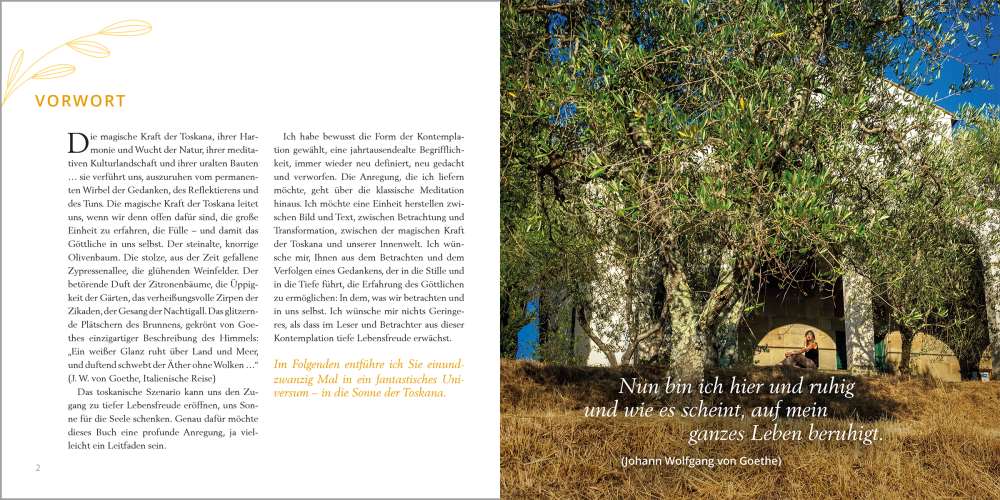 "Alles wird gut!" lautete die bekannte magische Formel von Nina Ruge, bis heute behält sie ihre Strahlkraft, nie war das Mantra wichtiger als jetzt. Die Journalistin und Erfolgsautorin nimmt uns mit auf eine ganz persönliche Reise - an Orte, an denen sie selbst die Seele auftanken, neue Kraft schöpfen kann. In 21 Achtsamkeitsmeditationen schafft Nina Ruge es, die Leser vom Druck des Alltags zu befreien, sie zu ermutigen, sich auf eine innere Reise zu begeben. Mit stimmungsvollen Bildern aus der Toskana - der Gegend, in der Nina Ruges zweites Ich zu Hause ist.