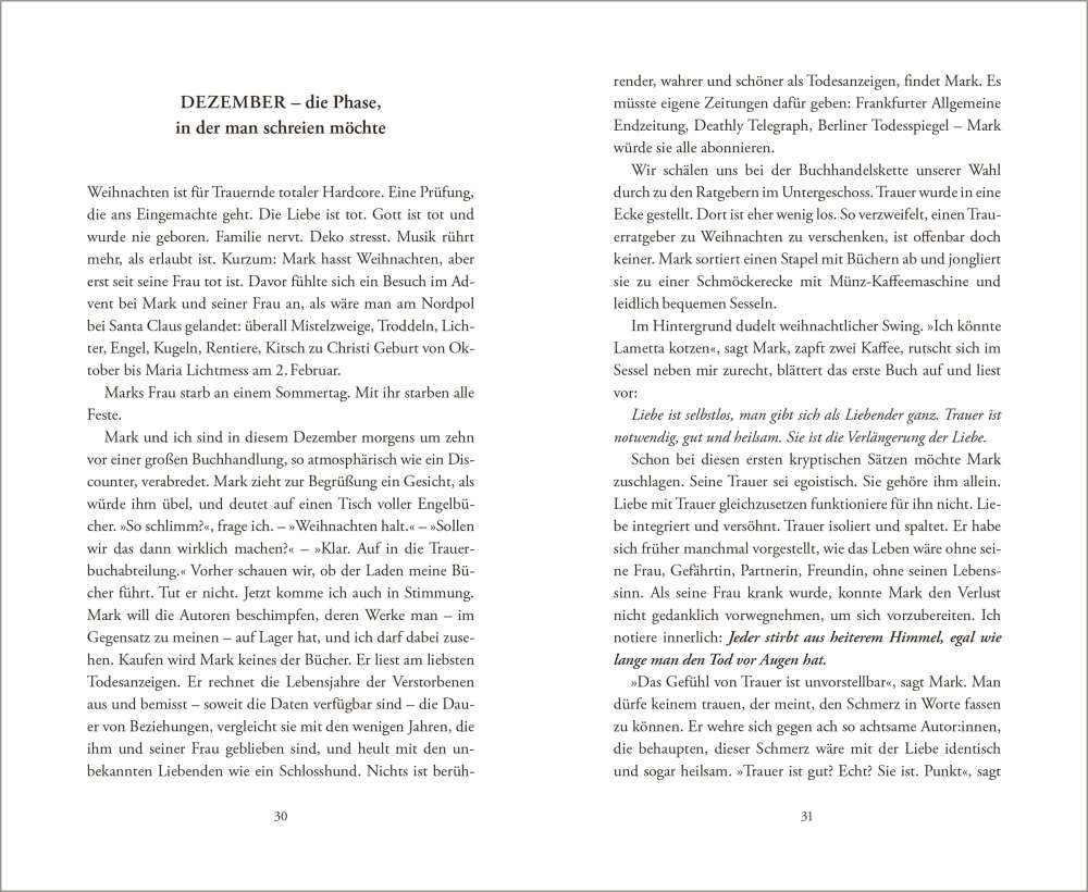 Auch wenn der Tod nicht immer unerwartet kommt, als Trauernde trifft er uns aus heiterem Himmel. Stefan Weiller schildert anhand von dreizehn ungeschminkten Porträts die unterschiedlichen Versuche, mit Sterben und Verlust geliebter Menschen umzugehen, den absoluten Abschied zu ertragen. In zwölf Kapiteln wandern wir durch die vielen Monate eines Trauerjahres, mit all dem Schmerz im Gepäck, der unvermeidlich ist, aber auch mit einer Skizze von Hoffnung und Glück. So spendet das Buch Trost durch Geschichten, die – von leichter Hand geschrieben – den Blick aus den Tiefen der Trauer immer wieder Richtung Himmel lenken.