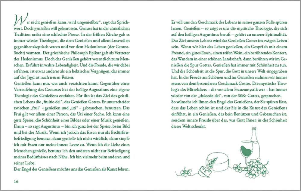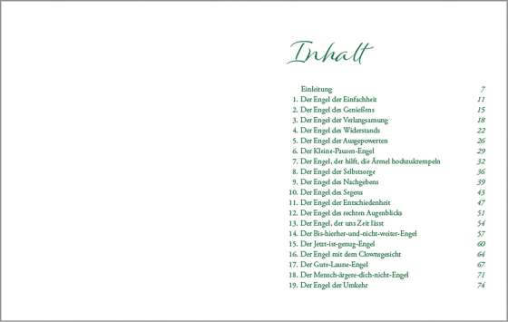 Glücklich zu leben ist gar nicht so einfach – und doch unser großes Ziel. Wie oft machen wir uns komplizierte Gedanken und damit das Leben schwer ... Da bräuchten wir einen Helferengel, der uns zu neuer Leichtigkeit verhilft. Anselm Grün macht uns in diesem Buch mit 33 himmlischen Boten vertraut, die uns zeigen, dass das einfache Leben uns zur Zufriedenheit führt. Da ist der Engel des Lobens und der Engel des Verzeihens, der Engel, der uns hilft, anzupacken und die Ärmel hochzukrempeln, aber auch der Engel der Verlangsamung, der uns zur Pause rät; der Engel, der anderen eine Grenze zeigt, aber auch der Engel des Nachgebens. Alles hat seine Zeit. Und jede Zeit, jede Lebensphase hält einen Engel für uns bereit.