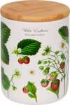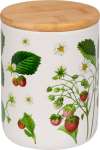 Macht garantiert Sommerlaune! Diese schöne Vorratsdose aus Keramik ist mit historischer Erdbeermotivik der Sammlung Augustina verziert. Sie bietet eine dekorative und luftdichte Aufbewahrungsmöglichkeit für Süßigkeiten, Kräuter und Gewürze, aber auch für Schreibtischutensilien. Die Vorratsdose hat ein Fassungsvermögen von etwa 0,65 l, ist ca. 13,5 cm hoch und hat einen Durchmesser von etwa 10 cm. Mit Bambusdeckel und Silikon-Dichtungsring. Handspülung empfohlen.