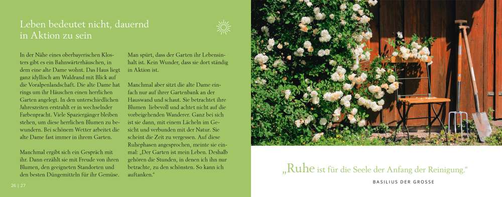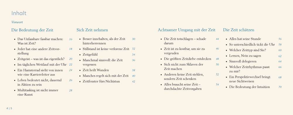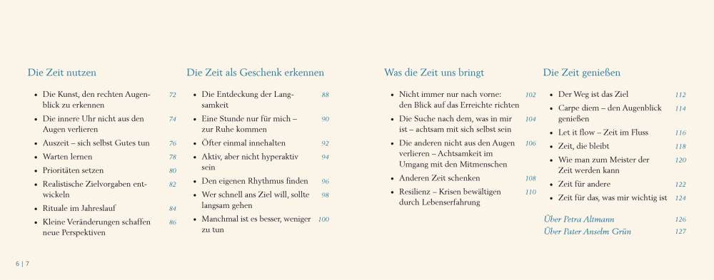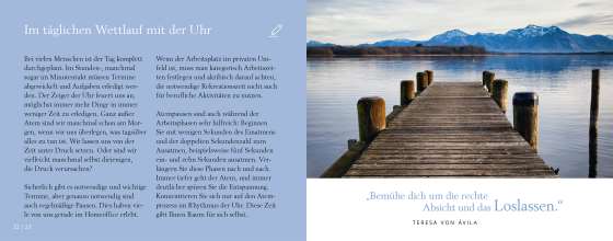 Für die meisten Menschen ist der Tag zu kurz und sie sehnen sich nach mehr Zeit, Zeit für sich selbst, Zeit für Wesentliches. Trotz des bestmöglichen Zeitmanagements ist die Flut von Aufgaben oftmals nicht zu bewältigen. Und wenn man dann doch unerwartet einmal Zeit hat, weiß man oft nichts Sinnvolles mit ihr anzufangen, verschwendet sie gar.Anselm Grün und Petra Altmann bieten in meditativen Übungen und spirituellen Impulsen Anregungen für einen sinnerfüllten Umgang mit der Zeit. Die Übungen sind mit passenden, stimmungsvollen Fotos illustriert.