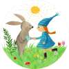 Dose aus Karton, 9 x 9,5 cm. 30 runde Karten, Fingerpuppe Hase