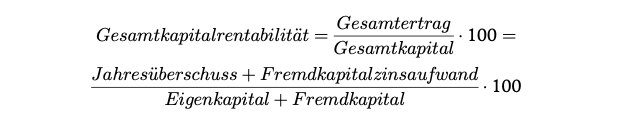 Die Gesamtkapital-R., die in der Literatur vereinzelt fälschlicherweise mit dem ROI gleichgesetzt wird, ergibt sich wie folgt: