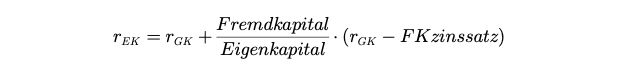 ) und den Anteil des Fremdkapitals am Gesamtkapital determiniert. Formal gilt: