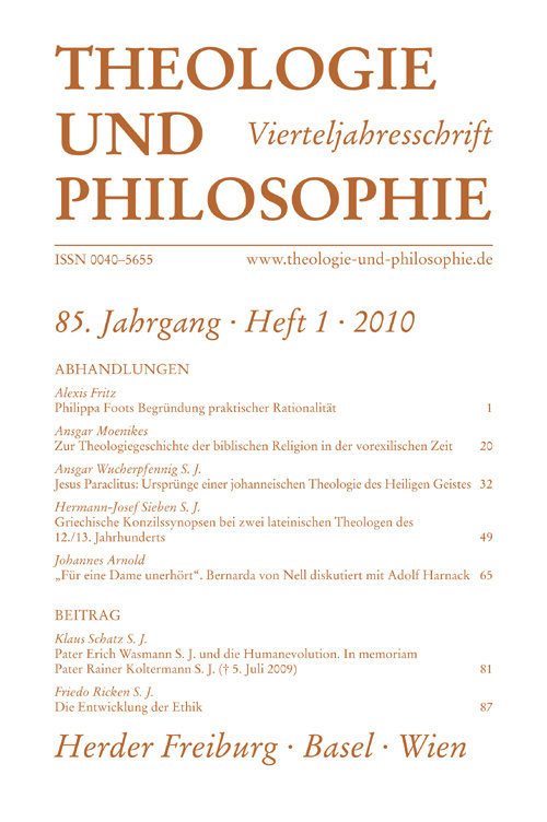 Titelseite Theologie und Philosophie. Vierteljahresschrift 85 (2010) Heft 1