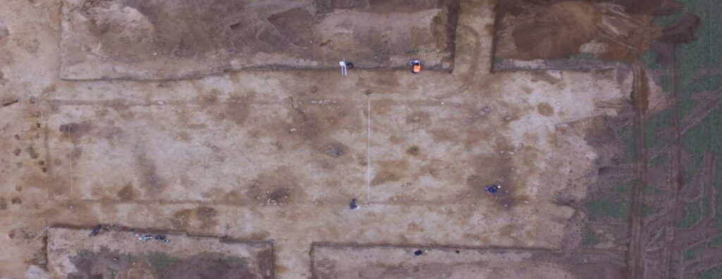 Im Inneren der westlichen Gebäudehälfte befand sich zentral gelegen eine Feuerstelle. An der nördlichen Längswand wurde ein Miniaturgefäß geborgen, welches als rituelle Opferung gedeutet wird. Bisher konnte ein Eingang in der Südwand identifiziert werden. Nach Erkenntnissen der 14C-Daten stammt der Bau aus der Zeit vom 10. bis zum 9. Jahrhundert v. Chr. und ist damit nur geringfügig älter als der Grabhügel. Ein zweites, kleineres Gebäude, das noch nicht vollständig ausgegraben wurde, liegt direkt neben dem vollständig freigelegten Wandgräbchenhaus.